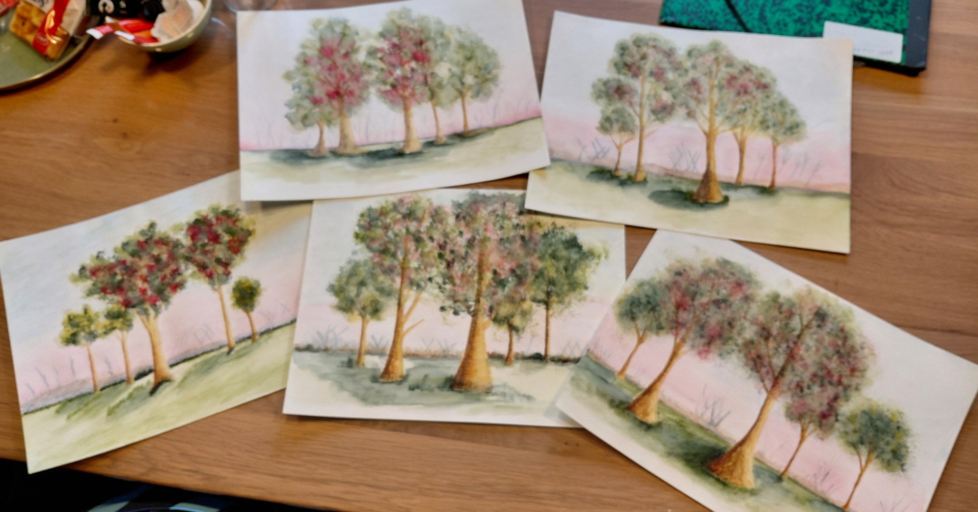 We starten bij de basis en leren stap voor stap de technieken, zoals kleuren mengen, lagen opbouwen en spelen met water en pigment.